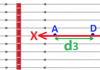 נבטא את הפרש הפוטנצילים בין הנקודות A ל B , כאשר המרחק בין הכדור הטעון לנקודה B הוא «math xmlns=¨http://www.w3.org/1998/Math/MathML¨»«mstyle mathsize=¨24px¨»«mn mathvariant=¨bold¨ mathcolor=¨#0000FF¨»2«/mn»«mo mathvariant=¨bold¨ mathcolor=¨#0000FF¨»§#183;«/mo»«msub»«mi mathvariant=¨bold¨ mathcolor=¨#0000FF¨»d«/mi»«mn mathvariant=¨bold¨ mathcolor=¨#0000FF¨»2«/mn»«/msub»«/mstyle»«/math»: