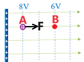 המטען משוחרר ממנוחה, אין אנרגיה קינטית למטען המשוחרר בנקודה A.