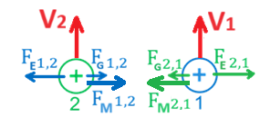 בהתאם לכיוון השדה המגנטי בסילונית ולכיוון הזרם בקטע OC , מכלל יד שמאל כיוון הכוח המגנטי הפועל על הקטע OC הוא כלפי מטה, כפי שניתן לראות באיור הבא.