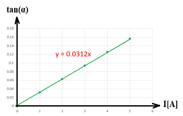לכן, מנקודת חציית הגרף את הציר האנכי ניתן לראות שהערך המוצג במשקל הדיגיטלי כאשר לא זורם זרם במוליך הוא 3 ניוטון .