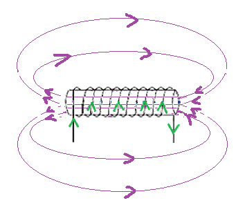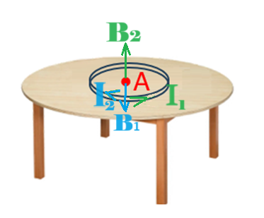 באיור הבא מתוארים הזרמים וכיוון השדה המגנטי.