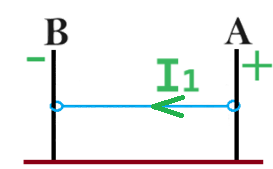 באיור הבא הזרם בקטע התיל הצמוד ללוחית מסומן באדום , והזרם בשאר קטעי התיל מסומן בירוק.
