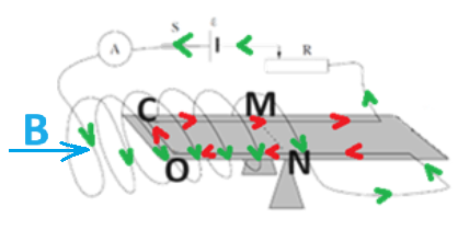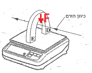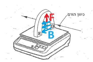 בהתאם לכיוון השדה המגנטי בתוך הסילונית ולכיוון הזרם בקטע OC כיוון הכוח המגנטי הפועל על התיל OC הוא כלפי מטה. כמורה באיור הבא: