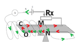 כיוון הזרם בקטע NO הוא בכיוון נגדי לכיוון השדה «math xmlns=¨http://www.w3.org/1998/Math/MathML¨»«mstyle mathsize=¨20px¨»«mo mathvariant=¨bold¨ mathcolor=¨#0000FF¨»(«/mo»«mi mathvariant=¨bold¨ mathcolor=¨#0000FF¨»§#945;«/mi»«mo mathvariant=¨bold¨ mathcolor=¨#0000FF¨»=«/mo»«mn mathvariant=¨bold¨ mathcolor=¨#0000FF¨»180«/mn»«mo mathvariant=¨bold¨ mathcolor=¨#0000FF¨»§#176;«/mo»«mo mathvariant=¨bold¨ mathcolor=¨#0000FF¨»)«/mo»«/mstyle»«/math»
