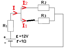 נסמן את הזרם הנוצר במצב זה ב ''I ונחשב את ערכו בעזרת חוק אוהם: