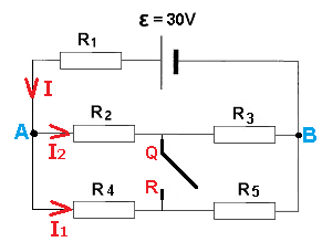 הזרם המגיע ממקור 2 מתפצל בצומת A, כך שיחס הזרמים המתפצלים הפוך ליחס ההתנגדויות, ומתקיים:
