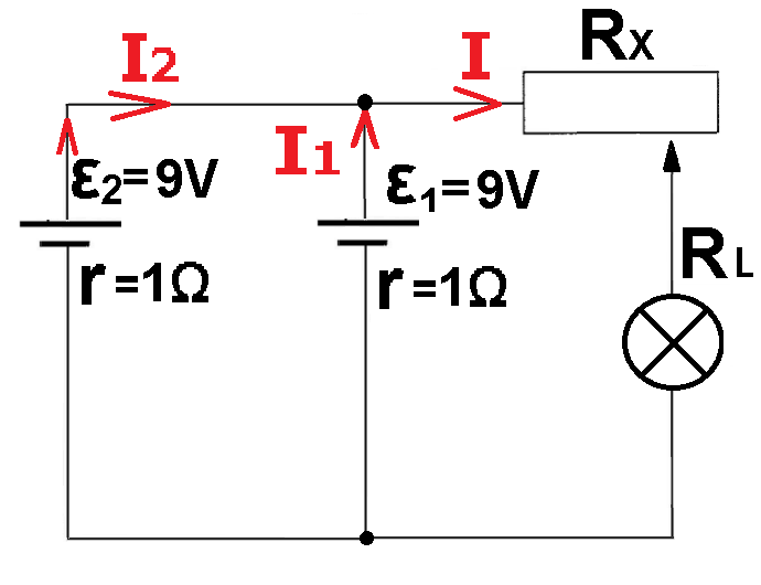 סכום המתחים על הנגד המשתנה והנורה שווה למתח המקור. נכתוב משוואת המתחים ונבטא ממנה את המתח על RX: