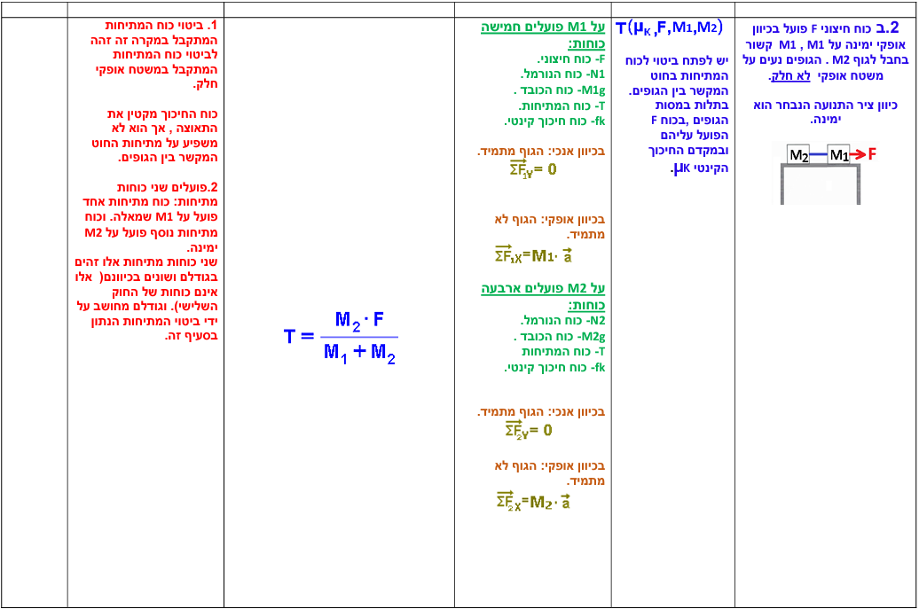 3.2. מתיחות בין שני גופים על משטח אופקי לא חלק
