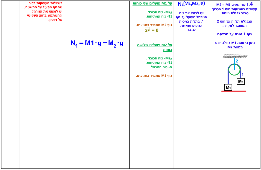 - 5. גוף תלוי וגוף על משטח אופקי חלק