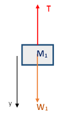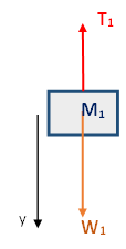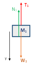 הגוף M1 מתמיד בתנועתו בכיוון האנכי, נכתוב משוואות התנועה בכיוון ציר ה-Y: