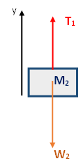 הגוף M2 מתמיד בתנועתו בכיוון האנכי, נכתוב משוואות התנועה בכיוון ציר ה-Y: