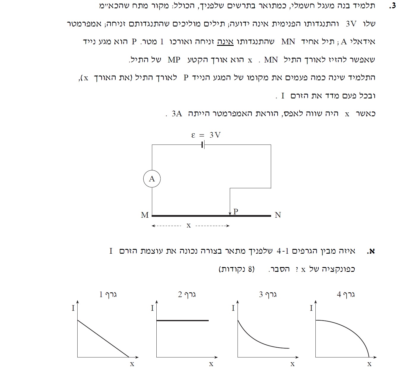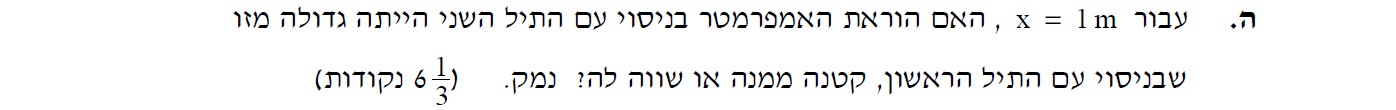 1. כאשר הגררה נמצאת בקצה הימני במעגל ב' , עוצמת הזרם תהיה קטנה אך לא אפסית, נחשב את עוצמת הזרם במצב זה: