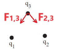 נסמן את השדה הנוצר ממטען «math xmlns=¨http://www.w3.org/1998/Math/MathML¨»«mstyle mathsize=¨20px¨»«msub»«mi mathvariant=¨bold¨ mathcolor=¨#0000FF¨»q«/mi»«mn mathvariant=¨bold¨ mathcolor=¨#0000FF¨»1«/mn»«/msub»«/mstyle»«/math» ב «math xmlns=¨http://www.w3.org/1998/Math/MathML¨»«mstyle mathsize=¨20px¨»«msub»«mi mathvariant=¨bold¨ mathcolor=¨#0000FF¨»E«/mi»«mn mathvariant=¨bold¨ mathcolor=¨#0000FF¨»1«/mn»«/msub»«/mstyle»«/math» ואת השדה הנוצר ממטען «math xmlns=¨http://www.w3.org/1998/Math/MathML¨»«mstyle mathsize=¨20px¨»«mo mathvariant=¨bold¨ mathcolor=¨#0000FF¨»§#160;«/mo»«msub»«mi mathvariant=¨bold¨ mathcolor=¨#0000FF¨»q«/mi»«mn mathvariant=¨bold¨ mathcolor=¨#0000FF¨»2«/mn»«/msub»«/mstyle»«/math» ב «math xmlns=¨http://www.w3.org/1998/Math/MathML¨»«mstyle mathsize=¨20px¨»«msub»«mi mathvariant=¨bold¨ mathcolor=¨#0000FF¨»E«/mi»«mn mathvariant=¨bold¨ mathcolor=¨#0000FF¨»2«/mn»«/msub»«/mstyle»«/math».