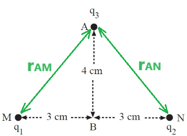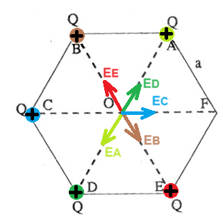 מרחק הנקודה C מהנקודות A ו- B הוא זהה, המטענים זהים, לכן המטענים יוצרים בנקודה C שדה זהה בגודלו.
