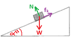 عندما يتحرك الجسم لأسفل السطح المائل. فإن السطح المائل سيؤثر على الجسم بقوة احتكاك حركي، وليس بقوة احتكاك ساكن.
