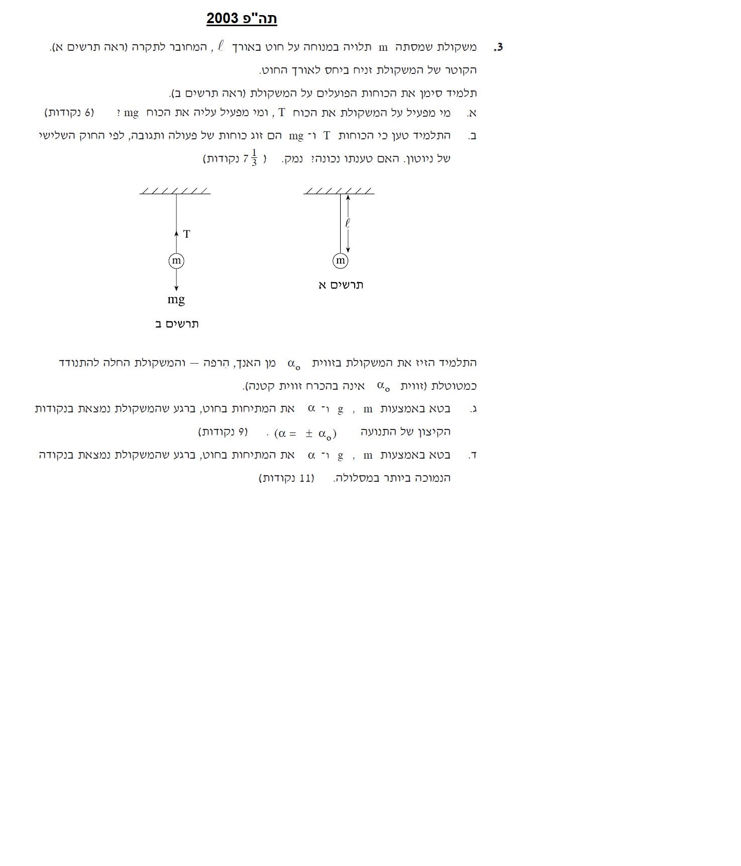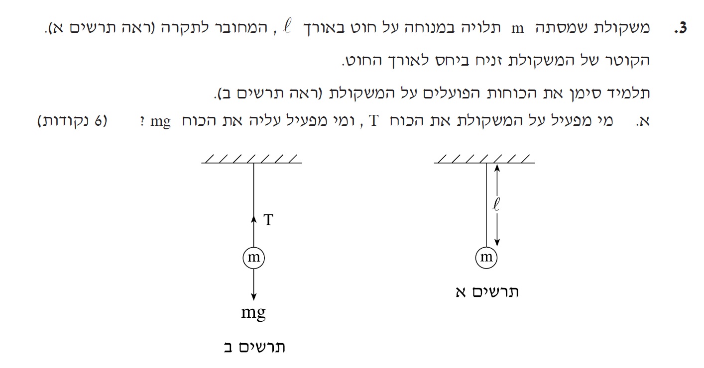1. גם בסעיף הקודם וגם בסעיף הזה יש למצוא את כוח המתיחות של החוט , אך מדובר בשני מקומות שונים של המשקולת.