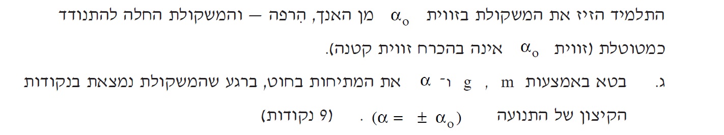 2. בנקודת הקצה מהירות המשקולת שווה לאפס, אם המהירות הייתה שונה מאפס , היה צריך להשתמש בשיקולי אנרגיה.