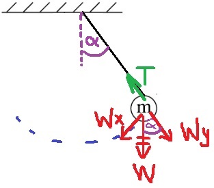 המשקולת נעה בתנועה מעגלית , כוח המתיחות פועל בכיוון רדיאלי , נבצע הפרדה ישרת זווית לכוח הכובד.
