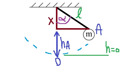 נבטא גיאומטרית את גובה הנקודה A , נשתמש בבניית עזר ניצור משולש ישר זווית שהיתר שלו הוא אורך החוט כאשר המשקולת נמצאת בנקודה A: