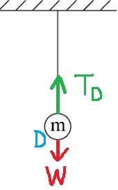 עריכת תרשים כוחות לרגע שבו הגוף חולף בנקודה D. כתיבת משוואת תנועה , ביטוי כוח המתיחות ממשוואת התנועה.