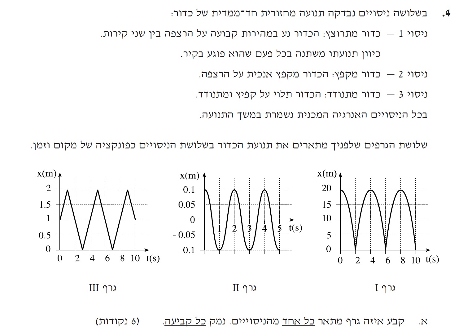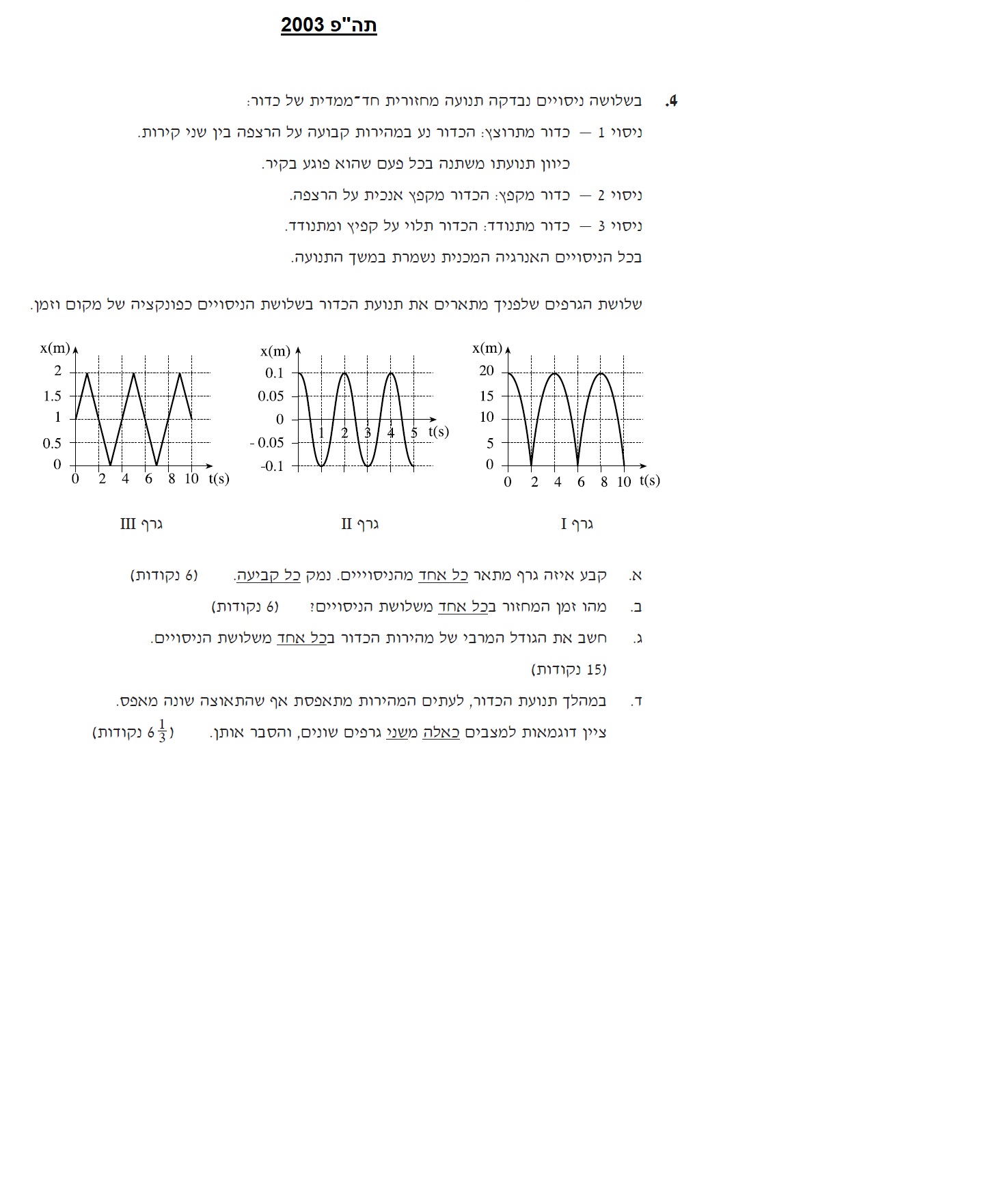 1. לא כתוב שהכדור המתנודד נע בתנועה הרמונית, אך מצורת הגרף יש להניח שהוא נע בתנועה הרמונית .