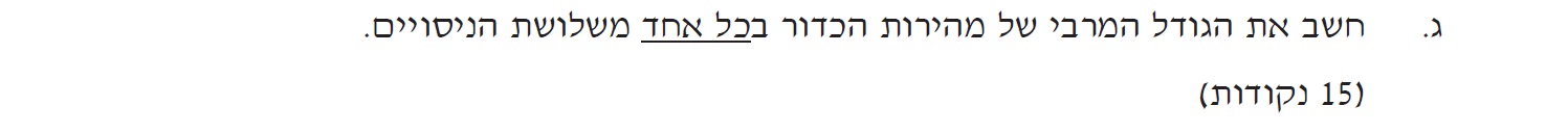 מהירותו המרבית של הכדור המתרוצץ, ניסוי 1
