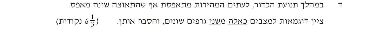 הבנת כל אחת מהתנועות ושליטה טובה של גרף מקום זמן.