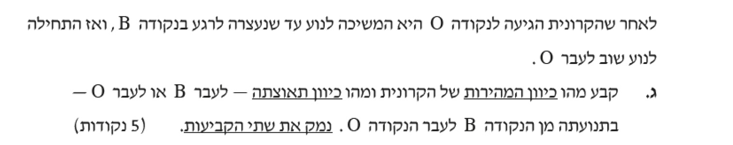 הקרונית מתחילה לנועה מנקודת הקצה השנייה B , והיא נעה לכיוון הנקודה O.