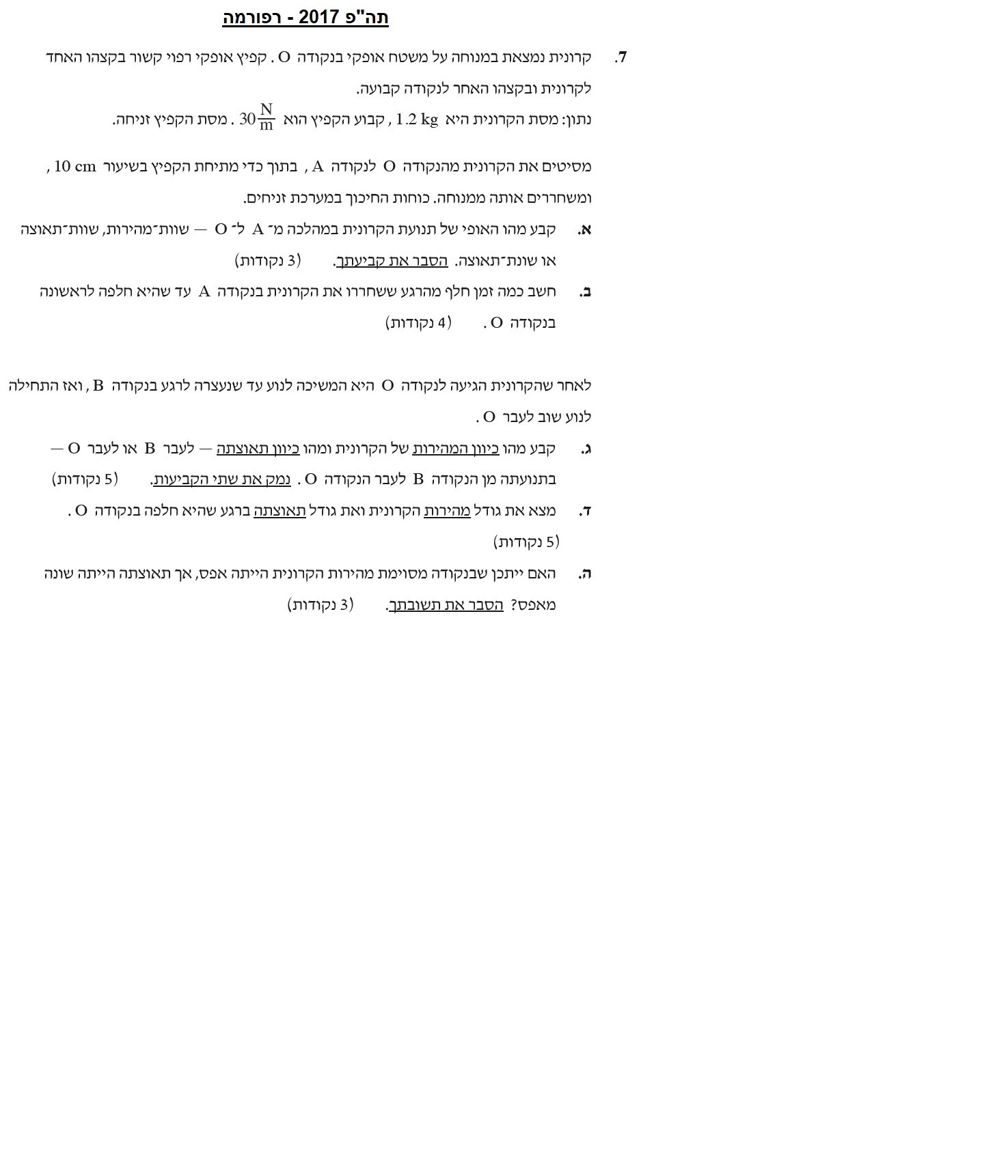 לכן גם במקרה זה כאשר הקרונית נעה מנקודה A לנקודה O ,הקרונית נעה בתאוצה משתנה.
