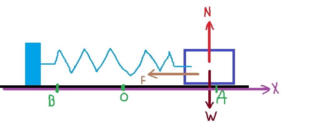 דרך נוספת מדינמיקה - בתנועת הקרונית מנקודה A לנקודה O התארכות הקפיץ קטנה , כוח הקפיץ הולך וקטן התאוצה הולכת וקטנה.