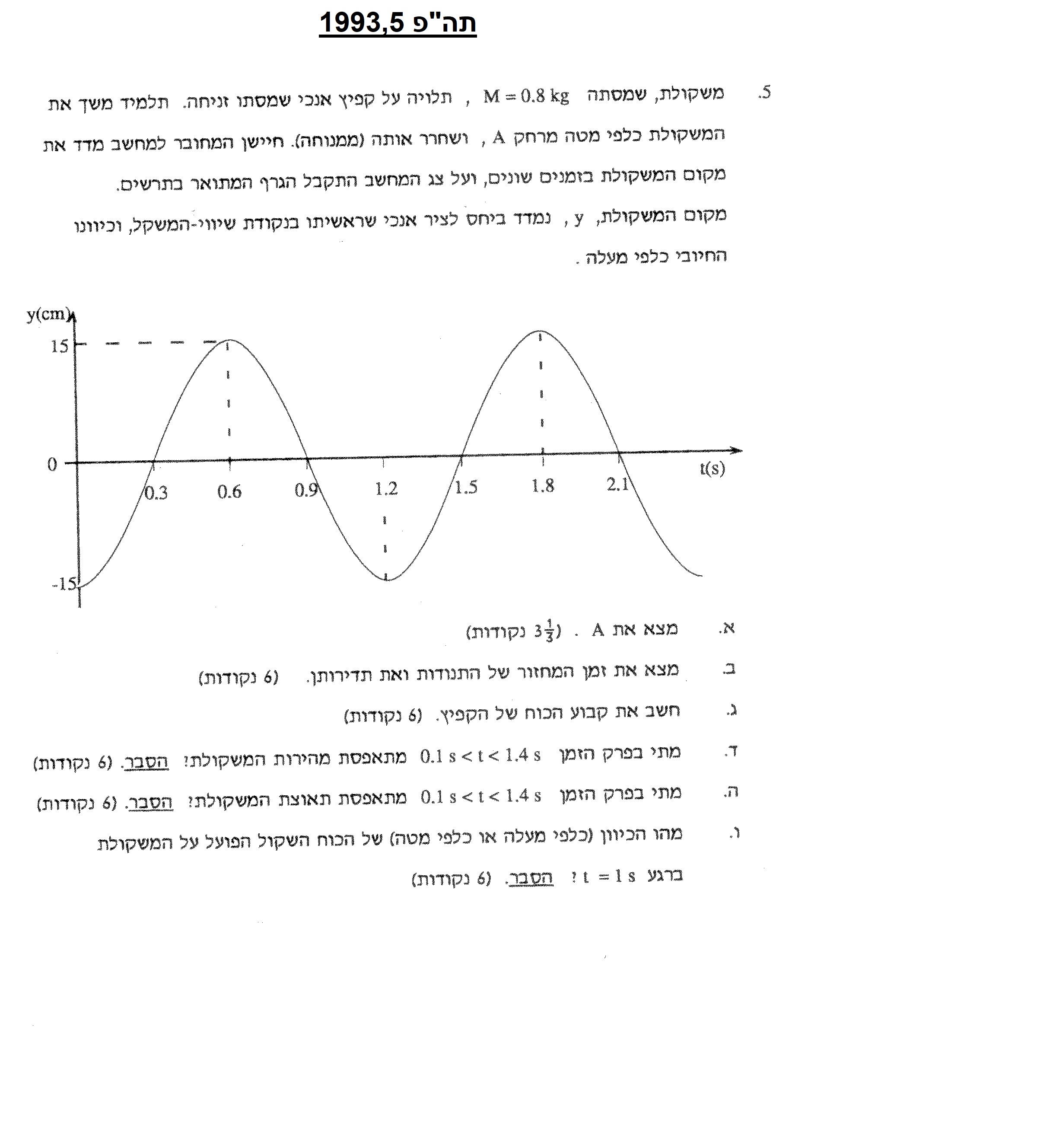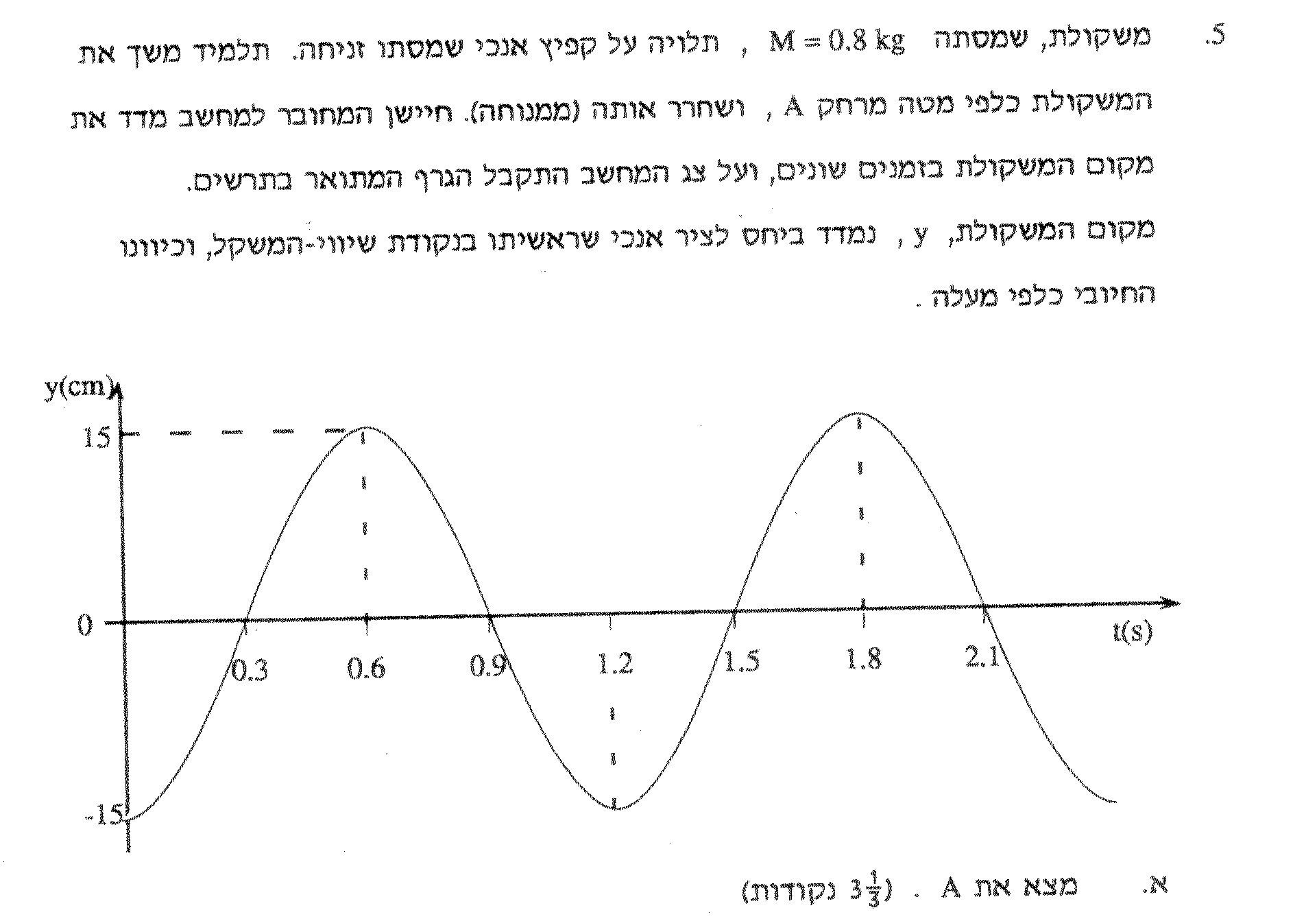 הגרף מתאים לתנועה הרמונית פשוטה . נבטא את קבוע הקפיץ , מנוסחת זמן המחזור לתנע ההרמונית פשוטה.