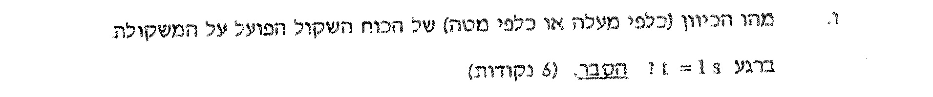 בתנועה הרמונית פשוטה הכוח השקול פועל לכיוון נקודת שיווי המשקל, לכן כיוון הכוח הוא כלפי מעלה.