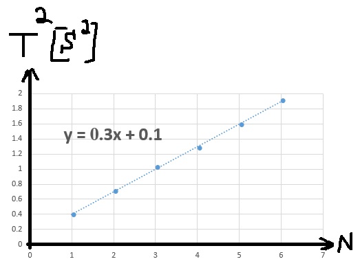 נערוך גרף של ריבוע זמן המחזור בתלות במספר הגלילים N: