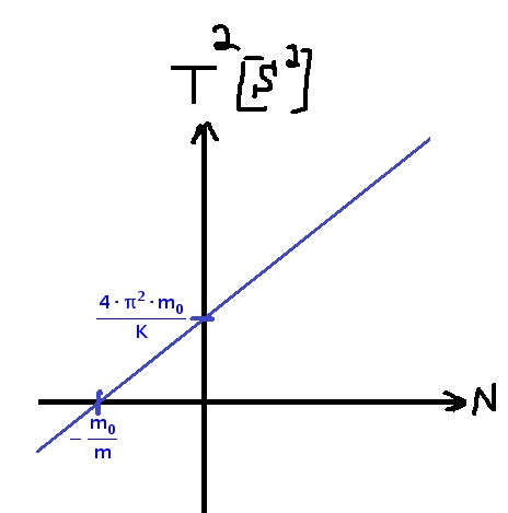 נקודת חיתוך הפונקציה את הציר האנכי מייצגת את ערך ריבוע זמן המחזור כשמספר המשקולות בסל שווה לאפס.