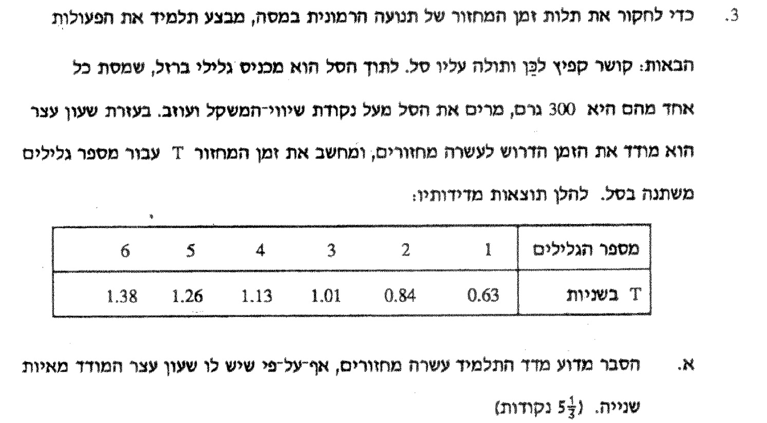 3. אפשר להגיד שיש בשאלה זאת מהלך למציאת קבוע קפיץ, בעזרת תה"פ אנכית עם סל ומשקולות.
