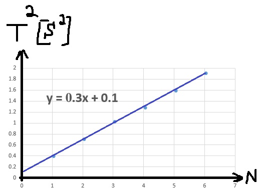 כדי למצוא את המשמעות של נקודות החיתוך עם כל אחד מהצירים , נכתוב ביטוי לריבוע זמן המחזור בתלות במספר הגלילים.