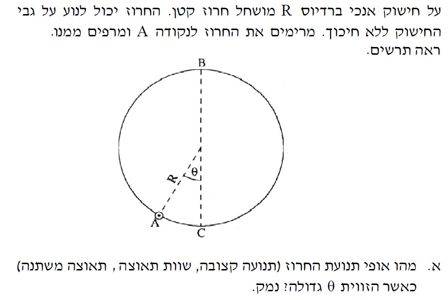 4. בתנועה המעגלית הראשונה יש כוח חיצוני המעלה את החרוז לנקודה A .