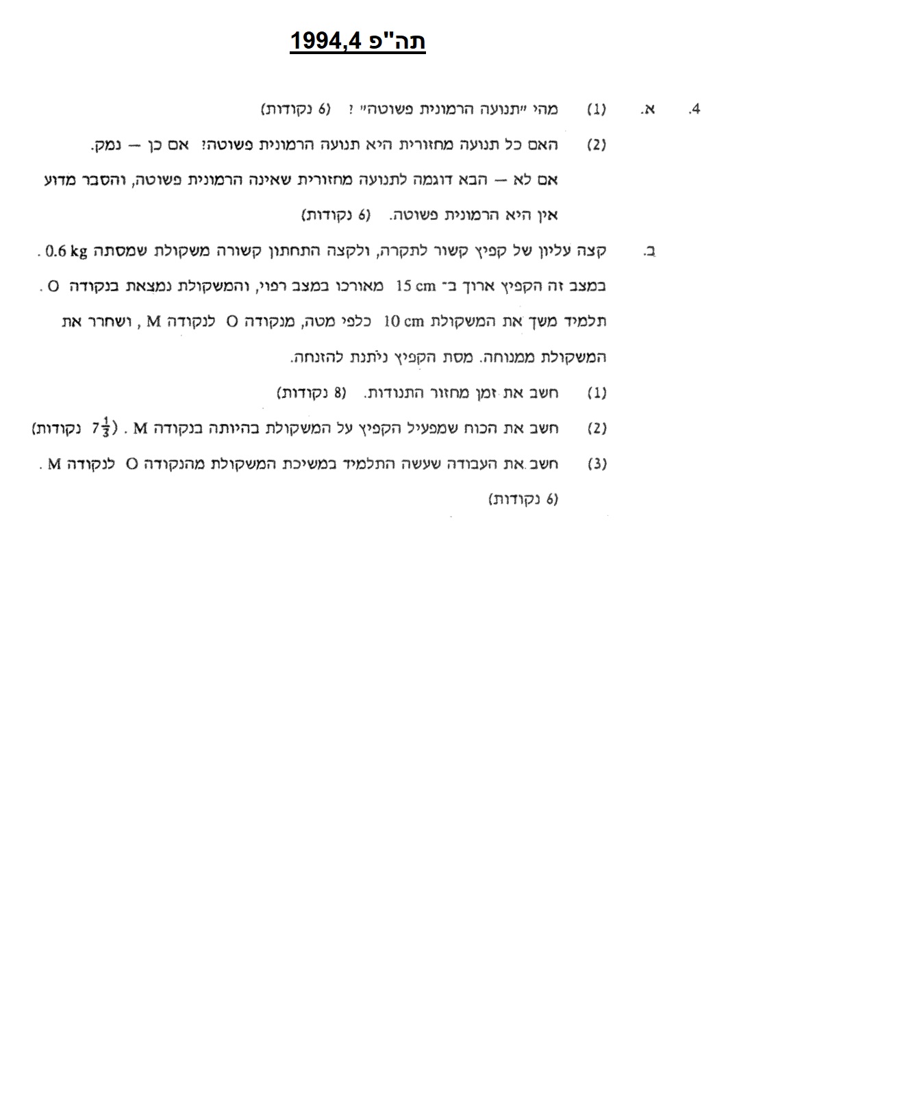 1. בתנועה הרמונית פשוטה בקפיץ אנכי , כדי להשתמש בפונקציות התה"פ חייבים למקם את ראשית הציר בנקודת שיווי המשקל.