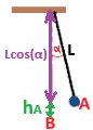 النقطة B تقع على مسار حركة الجسم، والبعد بين النقطة B والسقف يساوي طول الخيط . إذًا يتحقق: