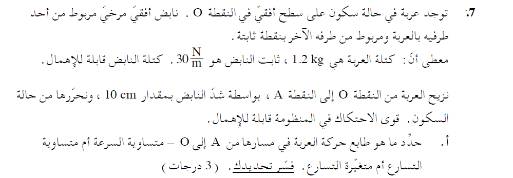 2. السؤال لا ينص على أن العربة تتحرك في حركة توافقية بسيطة.