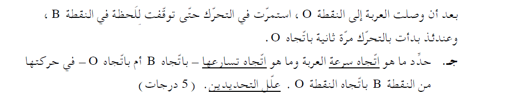 تبدأ العربة بالتحرك من نقطة النهاية الثانية B، وتتحرك نحو النقطة O.