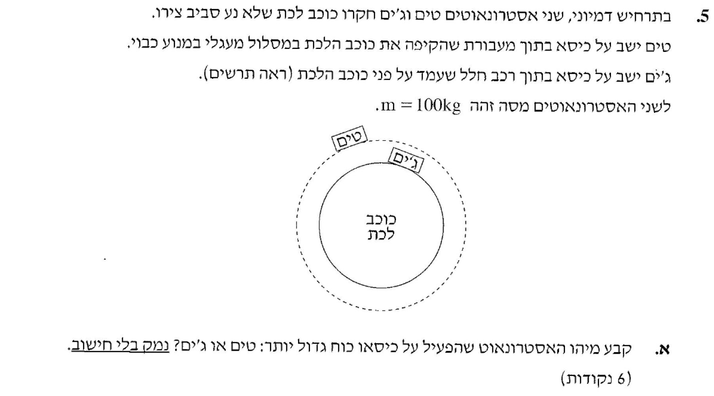נכתוב את משוואות התנועה ללוויין ולטים ,טים והלוויין נעים במסלולים זהים ובמהירויות זהות.