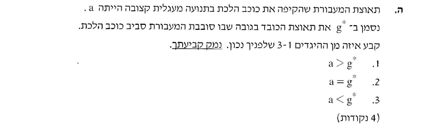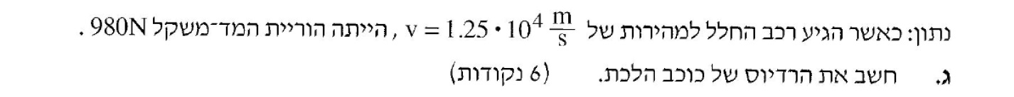 ג'ים נע בתנועה מעגלית. מהירותו של ג'ים שווה למהירות רכב החלל. נכתוב את משוואת התנועה המעגלית