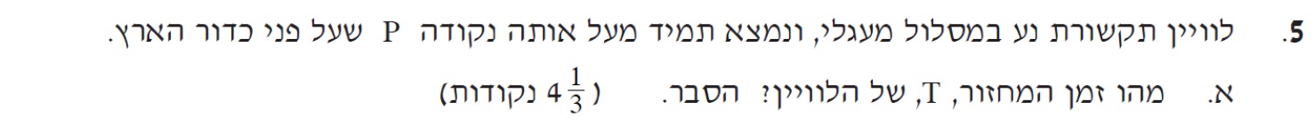 בסעיף זה צריך לקשר בין העובדה שהלוויין נע מעל נקודה קבועה לצורת המסלול ,סעיף מעט חידתי. אם לא ברור מה שואלים , זה בסדר! תנו לזה קצת זמן.
