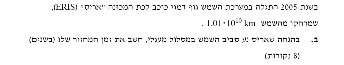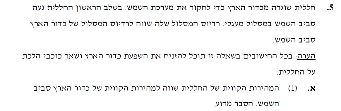1. בשאלה מופיע המרחק מהשמש , הכוונה היא למרחק ממרכז השמש.