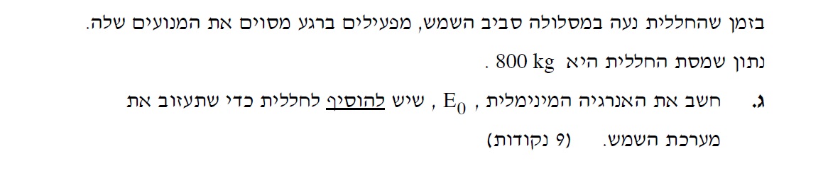 כדי שהחללית תעזוב את מערכת השמש בתוספת האנרגיה המינמאלית, האנרגיה המכנית הכוללת של החללית צריכה להיות אפס ג'אול לאחר תוספת האנרגיה.