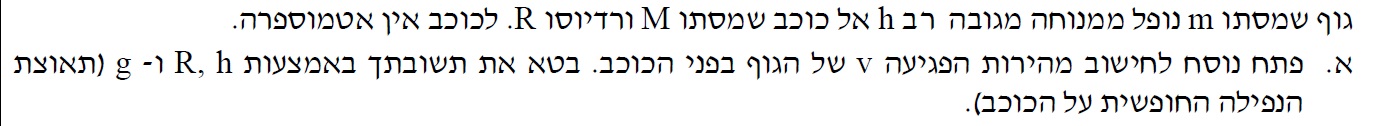 2. את תאוצת הכובד על פני הכוכב יש לסמן ב *g , ולא ב g  כפי שמסומן בשאלה.