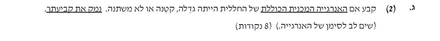 2. אין צורך לכתוב נימוק אך תשובה לא נכונה ללא נימוק לא מזכה בניקוד .