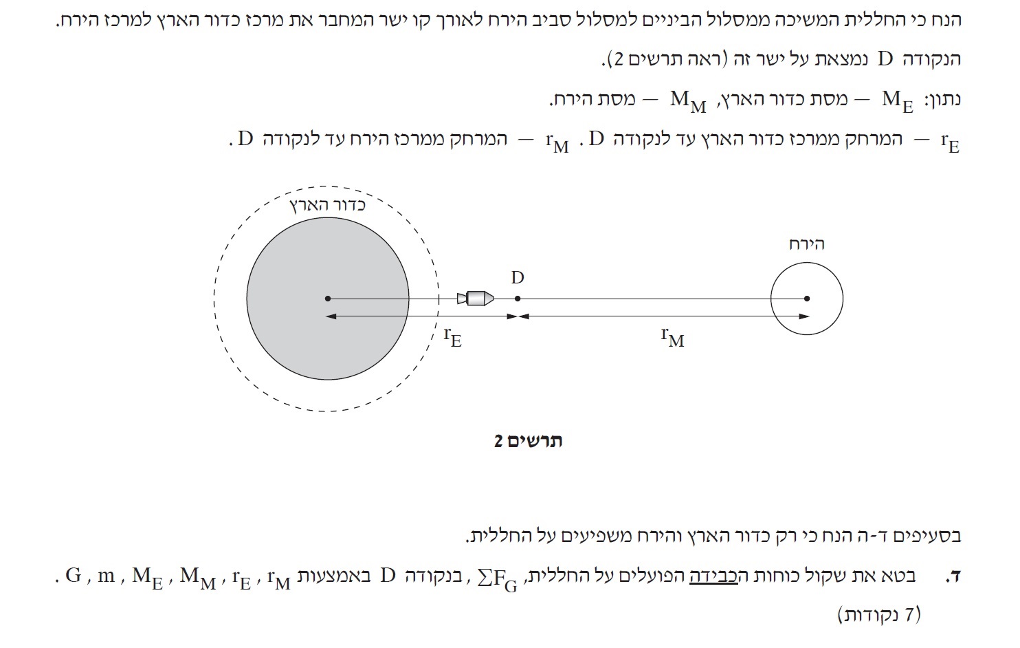 1. בסעיף הקודם יש לבטא את הכוח השקול בתלות במרחקים מהירח ומכדור הארץ.
