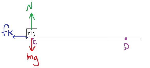 نرسم مخطط للقوى المؤثرة على الجسم عندما يتحرك من النقطة C إلى النقطة D: